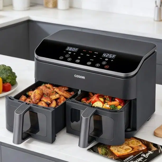 Air fryers are suitable for many homes and kitchens, especially busy families. Surveys show that 37% of households with children own an air fryer. This figure rises to 51% in households with three or more children. People pursuing healthy eating choose air fryers to reduce their intake of fat and calories. Fast food restaurant workers use air fryers for quick cooking, saving on oil costs. People who frequently buy groceries in bulk or cook for multiple people prefer double-basket air fryers because this model can cook more dishes at once.