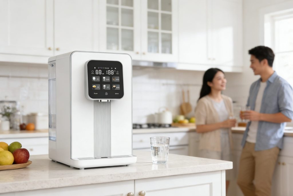 The water contact parts are made of BPA-free, food-grade materials, ensuring drink safety.