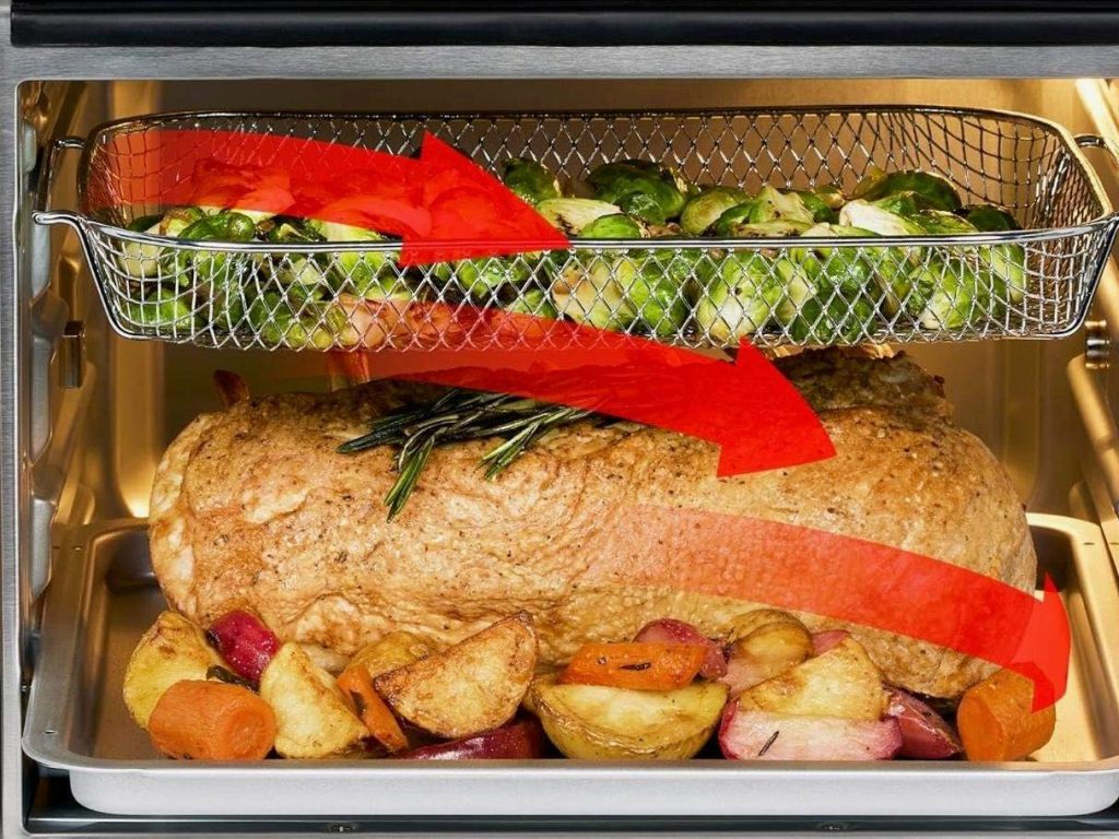 Equipped with a dual basket air fryer structure, AF100T01 enables cooking two foods simultaneously.